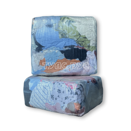 Состоит из цветного постельного белья секонд-хенд (пододеяльники, простыни, наволочки, наматрасники из сатина, бязи, ситца и аналогичных гладких безворсовых тканей).